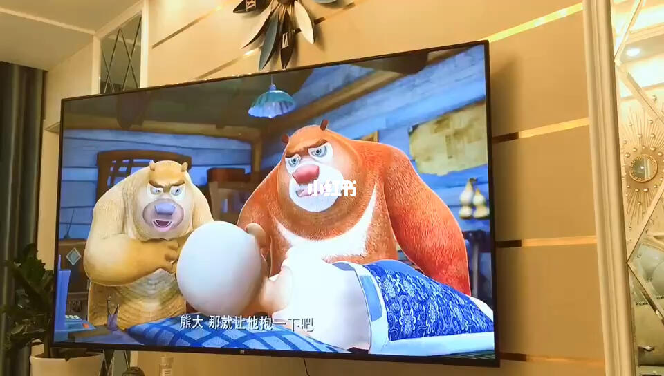 電視屏幕上,熊大熊二正在嬉戲打鬧,陽光透過樹梢灑在他們身上,顯得特別溫暖,光頭強帶著工具,與兩只小熊展開了一場別開生面的冒險之旅,畫面溫馨輕松,仿佛讓人置身于那片森林之中。